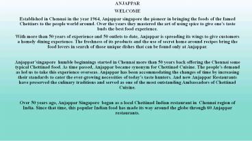 • Established in Chennai in the year 1964, Anjappar