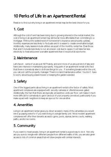 Title: 10 Perks of Life in an Apartment Rental (1)