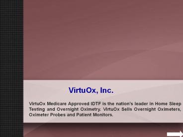 Oximetry. VirtuOx Sells Overnight Oximeters,