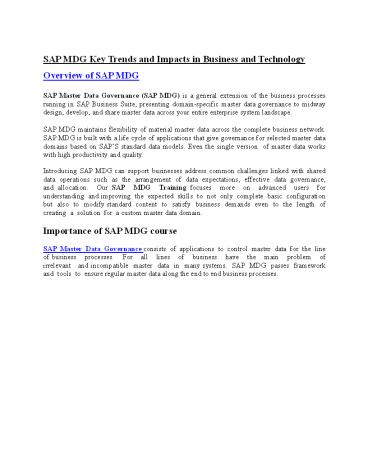 transactions. SAP MDG Training at SAPVITS SAPVITS
