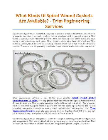 Title: What Kinds Of Spiral Wound Gaskets Are Available? - Trim Engineering Services