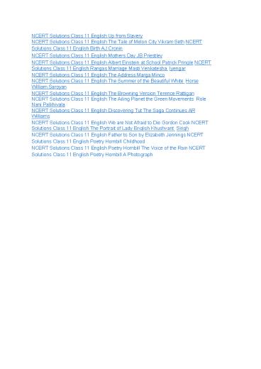 NCERT Solutions Class 11 English PowerPoint PPT Presentation
