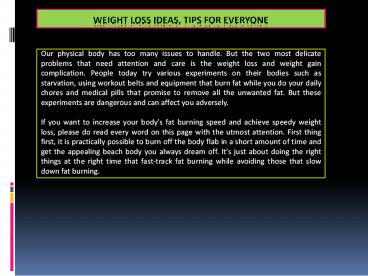 Right Weight Loss Plan for Everyone PowerPoint PPT Presentation
