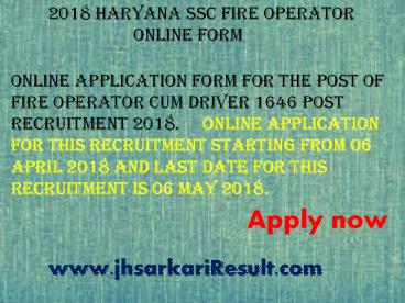 2018 Haryana SSC Fire Operator Online Form PowerPoint PPT Presentation