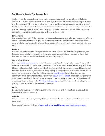 essential for camping. Wool is temperature-regulat