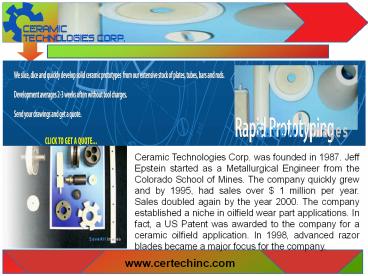 Ceramic Technologies Corp. was founded in 1987.