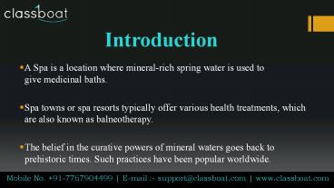 water is used to give medicinal baths. - Spa towns or spa resorts typically offer various