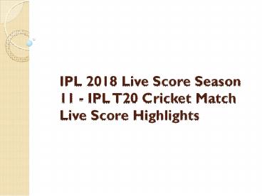 Title: IPL 2018 Live Score Season 11 - IPL T20 Cricket Match Live Score Highlights