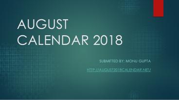 AUGUST CALENDAR 2018 PowerPoint PPT Presentation