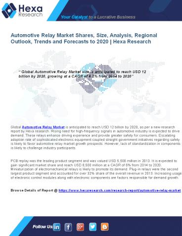 Title: Automotive Relay Market Overview and Forecast Report, 2012 to 2020