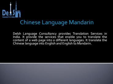 Chinese Language Mandarin PowerPoint PPT Presentation