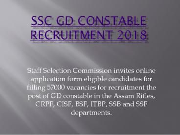 SSC GD Constable Recruitment 2018 PowerPoint PPT Presentation