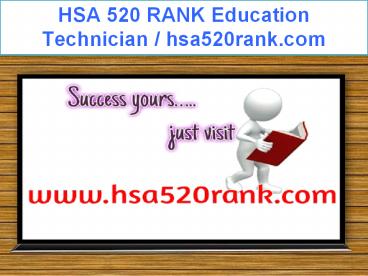 Title: HSA 520 RANK Education Technician / hsa520rank.com