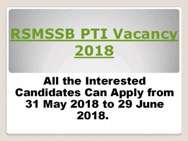 RSMSSB PTI Recruitment 2018 PowerPoint PPT Presentation