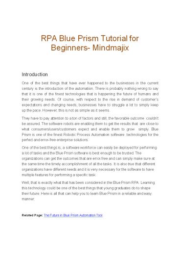 1RPA Blue Prism Tutorial for Beginners- Mindmajix