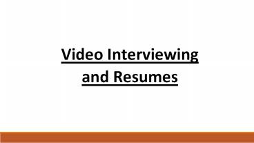 Video Interviewing and Resumes PowerPoint PPT Presentation