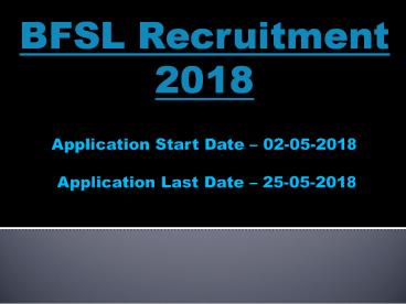 BFSL Recruitment 2018 PowerPoint PPT Presentation