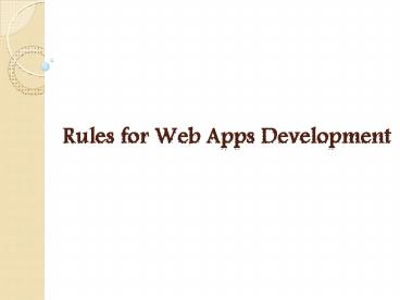 Rules for Web Apps Development PowerPoint PPT Presentation