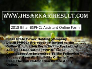 2018 Bihar BSPHCL Assistant Online Form