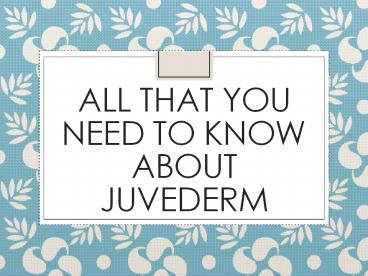 All That You Need To Know About Juvederm PowerPoint PPT Presentation