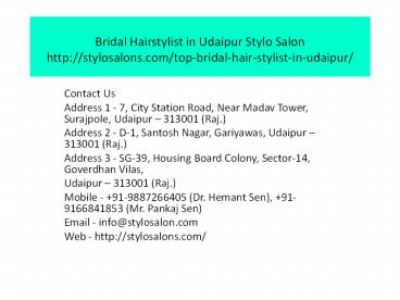 Title: Bridal Hairstylist in Udaipur Stylo Salon
