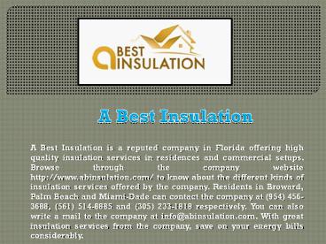 A Best Insulation 13849 SW 142 Ave Miami, Fl,