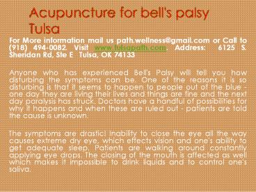 Acupuncture for bell's palsy Tulsa PowerPoint PPT Presentation