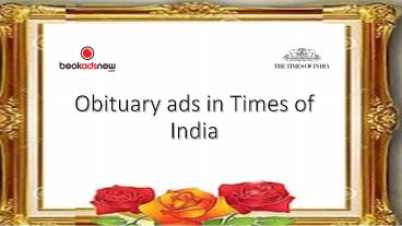 Publish Times of India Obituary Ads Online via Bookadsnow PowerPoint PPT Presentation