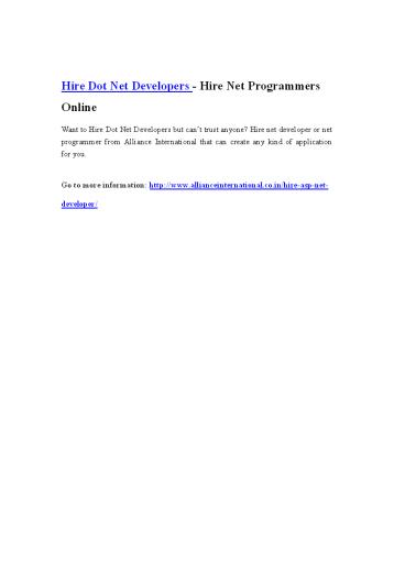 Hire Dot Net Developers - Hire Net Programmers Online PowerPoint PPT Presentation