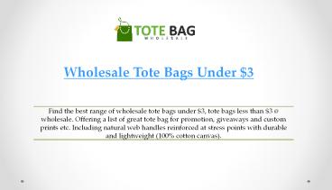 Find the best range of wholesale tote bags under 3, tote bags less than 3 _at_ wholesale. Offering a list of great tote bag for promotion, giveaways and custom prints etc. Including natural web handles reinforced at stress points with durable and lightweight (100 cotton canvas).