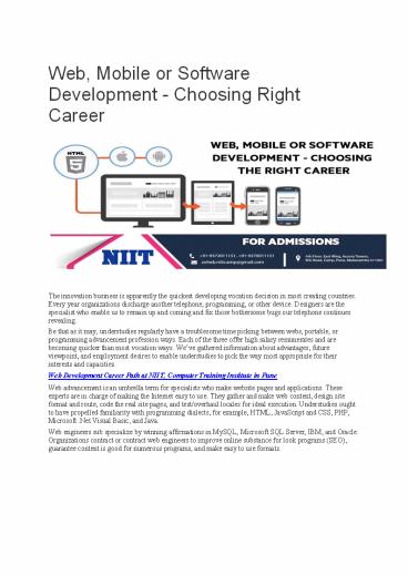 Title: Web, Mobile or Software Development – Choosing Right Career