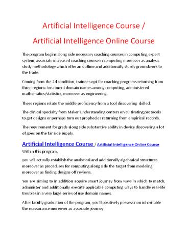 Title: Artificial Intelligence Course | Artificial Intelligence Course Online