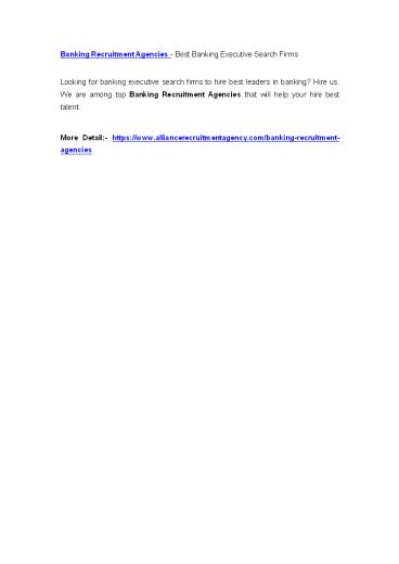 Banking Recruitment Agencies - Best Banking Executive Search Firm PowerPoint PPT Presentation