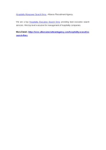 Hospitality Manpower Search firms - Alliance Recruitment Agency PowerPoint PPT Presentation
