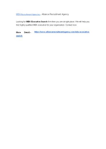 MBA Recruitment Agencies - Alliance Recruitment Agency PowerPoint PPT Presentation