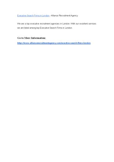 Executive Search Firms in London - Alliance Recruitment Agency PowerPoint PPT Presentation