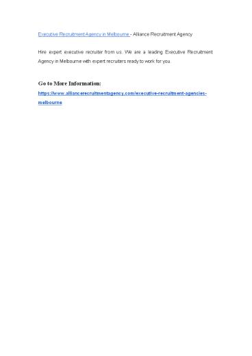 Executive Recruitment Agency in Melbourne - Alliance Recruitment Agency PowerPoint PPT Presentation