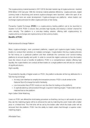 cryptocurrencies or fiat money. - Panaesha Capital Exchange (PCEX) is a