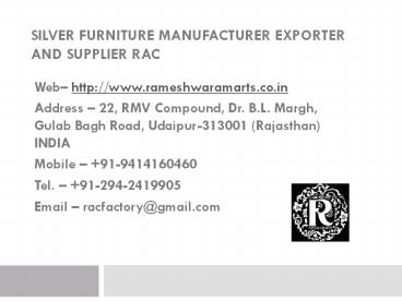 Silver Furniture Manufacturer Exporter and Supplier RAC PowerPoint PPT Presentation