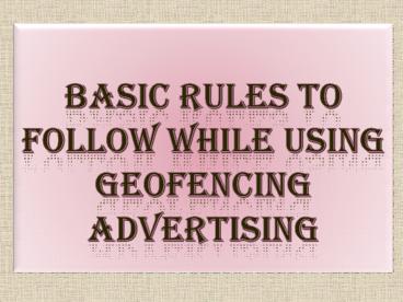 Basic Rules to follow while using Geofencing Advertising PowerPoint PPT Presentation