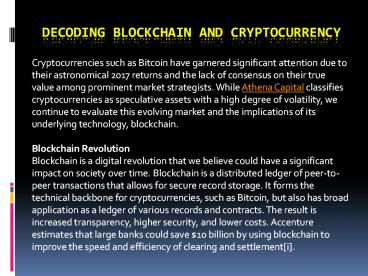 Title: Decoding Blockchain and Cryptocurrency
