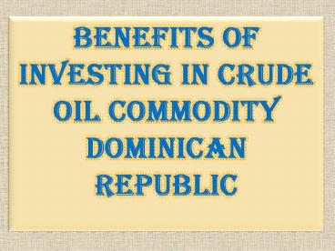 Benefits of Investing in Crude Oil Commodity Dominican Republic PowerPoint PPT Presentation