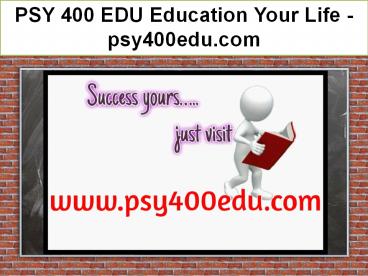 Title: PSY 400 EDU Education Your Life / psy400edu.com