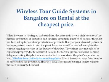 Wireless Tour Guide Systems in Bangalore PowerPoint PPT Presentation