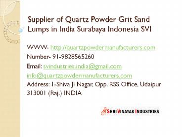 Title: Supplier of Quartz Powder Grit Sand Lumps in India Surabaya Indonesia SVI