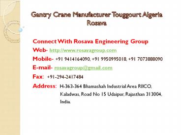 Title: Gantry Crane Manufacturer Touggourt Algeria Rosava