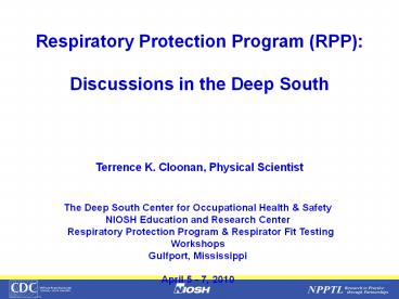 1Respiratory Protection Program (RPP) Discussions