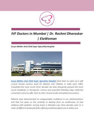 Title: IVF Doctors in Mumbai | Dr. Rashmi Dharaskar | ElaWoman