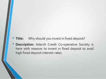 Why should you invest in fixed deposit? PowerPoint PPT Presentation