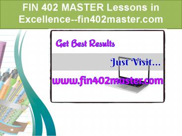 Title: FIN 402 MASTER Lessons in Excellence--fin402master.com